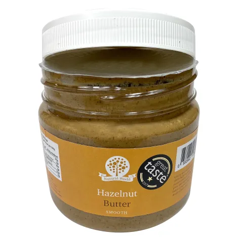 The Nutural World nut range offers 100% nuts, lightly toasted and stone-milled, ground into a fine, slightly textured paste. Hazelnuts offer a rich, earthy flavour with mild sweetness.