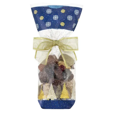 Polypropylene bags with a beautiful festive landscape design and a fully integrated card base*, so the bags will stand up even when containing lightweight products. We recommend fastening with one of our festive ribbons. Each pack contains 100 bags, 100 x 220mm.