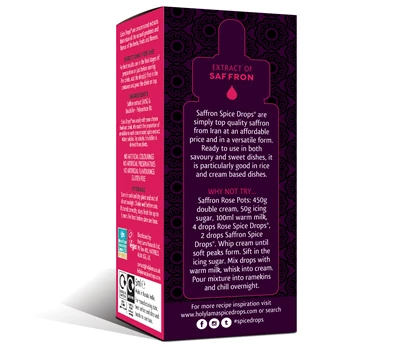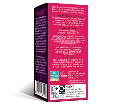 Spice Drops are concentrated extracts that retain all the natural goodness and authentic flavour of the herbs, fruits and flowers. Water and fat soluble, they mix easily with your chosen food or drink. Their emulsifier is derived from plants.