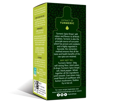 - Description: 3 drops = 1/2 tsp ground turmeric