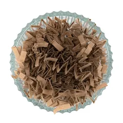Zigzag craft shredded paper for use in packaging and cushioning products, for example our postal boxes and hamper trays....